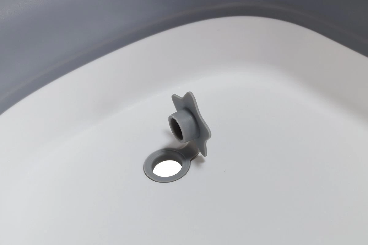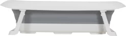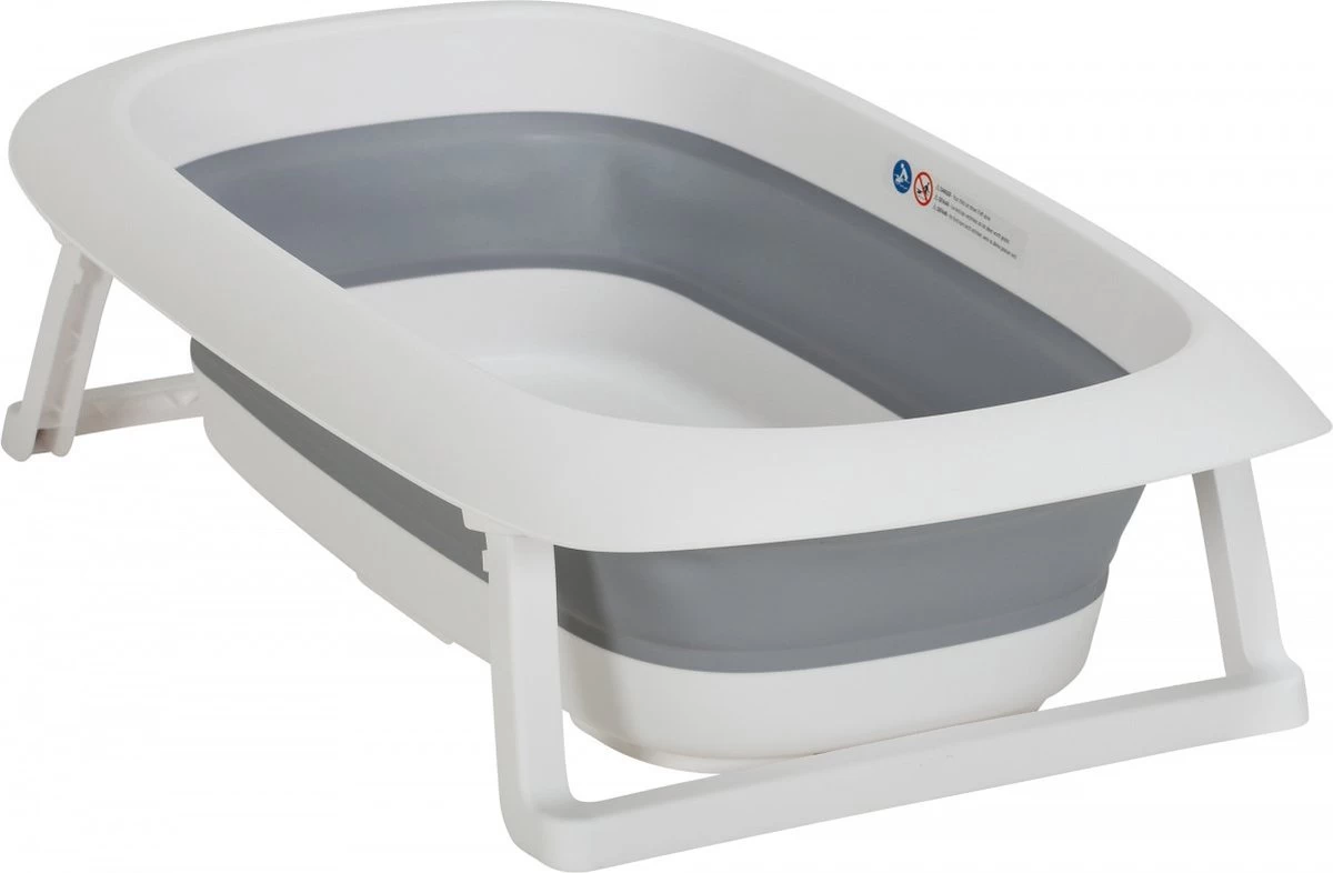 Dit handige opvouwbare kinderbadje in maat M, heeft een flexibele buigbare wand (grijs). Hierdoor kun je het plat opvouwen en compact opbergen. Superhandig voor thuis, op de camping of bij de oppas. De bovenrand, uitklap-poten en bodem zijn gemaakt van stevig kunststof (mat wit) waardoor het niet inzakt en alles veilig te gebruiken is, ook met je pasgeboren kindje.