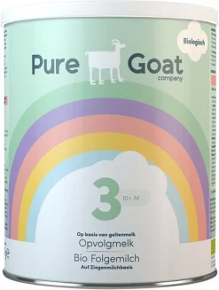 Pure Goat Company’s Opvolgmelk 3 is specifiek geschikt voor zuigelingen ouder dan 10 maanden en uitsluitend als onderdeel van een gevarieerd eetpatroon. Biologisch en gemaakt met geitenmelk. Volg altijd de instructies op de verpakking, tenzij je arts iets anders adviseert. Pure Goat Company’s opvolgmelk 3 is niet geschikt voor baby’s jonger dan 6 maanden.