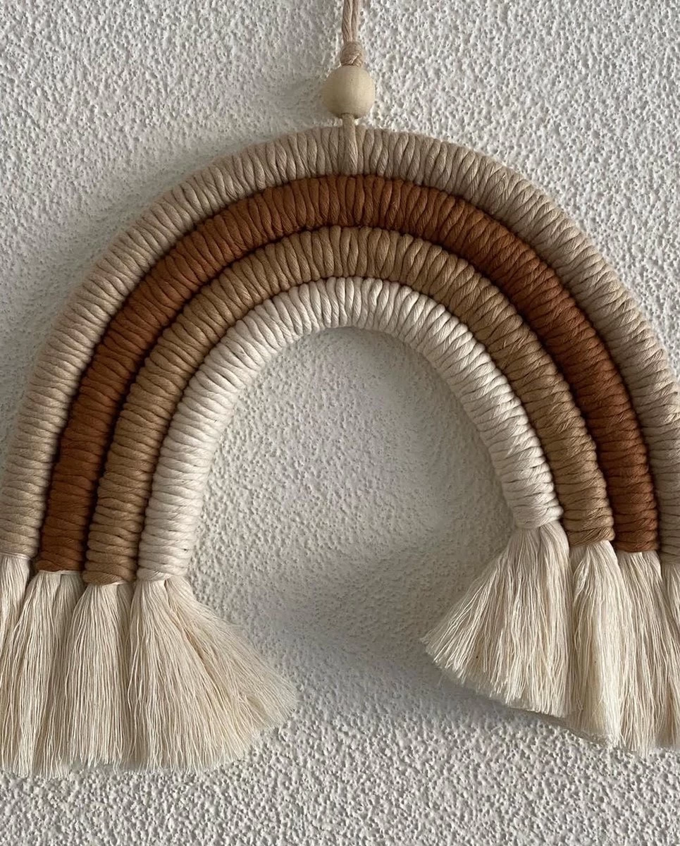 Voeg een andere sfeer toe aan de kinderkamer met Macramey regenboog, onze handgemaakte macramé producten zijn gemaakt van echt katoen en echt macrame garen en elk product wordt op bestelling gemaakt, dus elke product is uniek.
