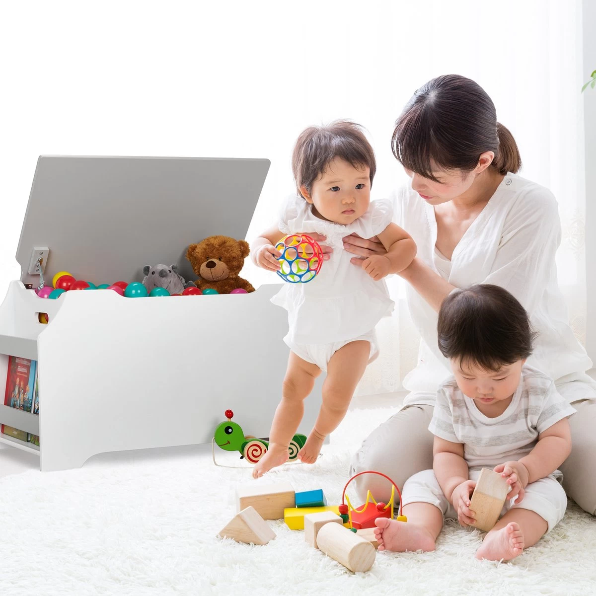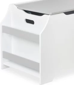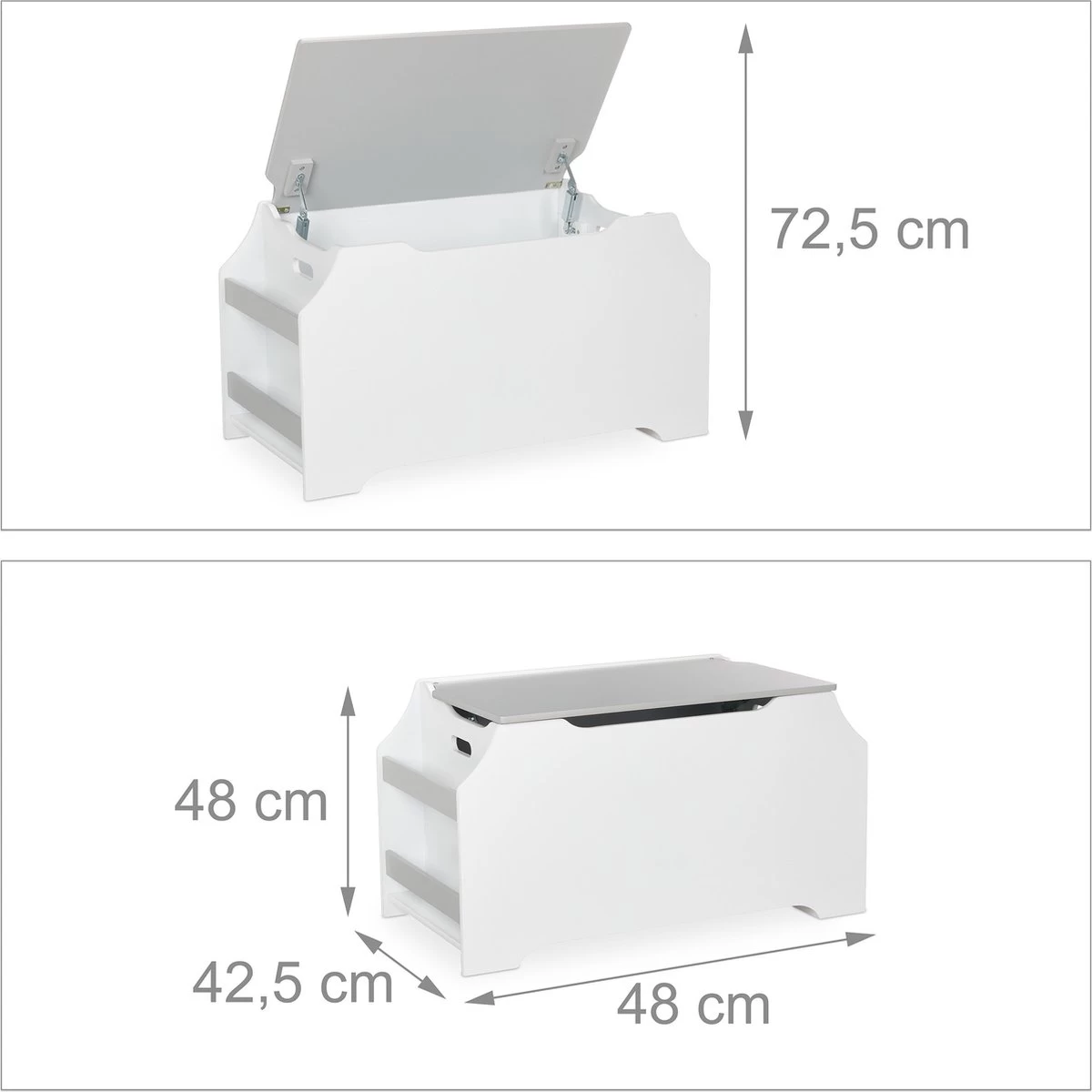 Tijdens het spelen en ravotten in de kinderkamer ontstaat er altijd wel chaos. Dankzij deze speelgoedkist is de rommel echter in een handomdraai opgeruimd. Knuffeldieren, bouwblokken en ander speelgoed kun je in de opbergkist netjes en uit het zicht opbergen. Boeken kun je in de vakken aan de zijkant een plekje geven. De deksel sluit extra zachtjes zodat het niet gevaarlijk is voor kinderhandjes. Het neutrale design is geschikt voor zowel jongens als meisjes.