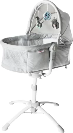 Dit handige wiegje is gemakkelijk in drie hoogtes te verstellen.