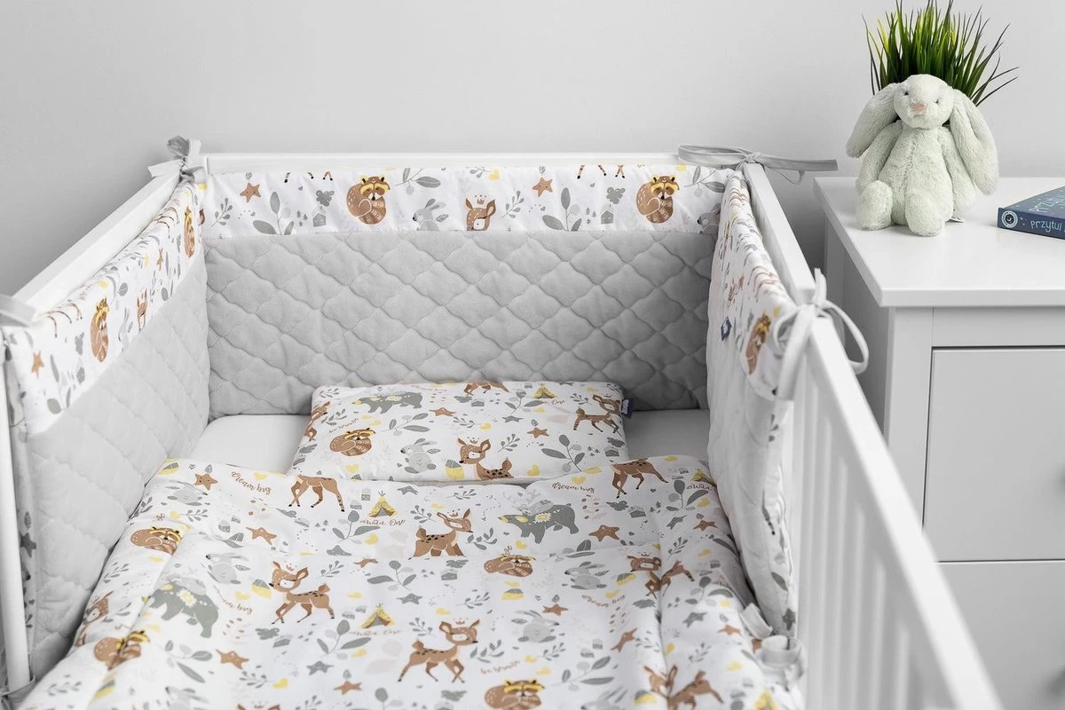De bumper heeft niet alleen een praktische functie, maar is ook een decoratie voor een kinderkamer. Het is ontworpen voor een bed met een afmeting van 120×60 cm.