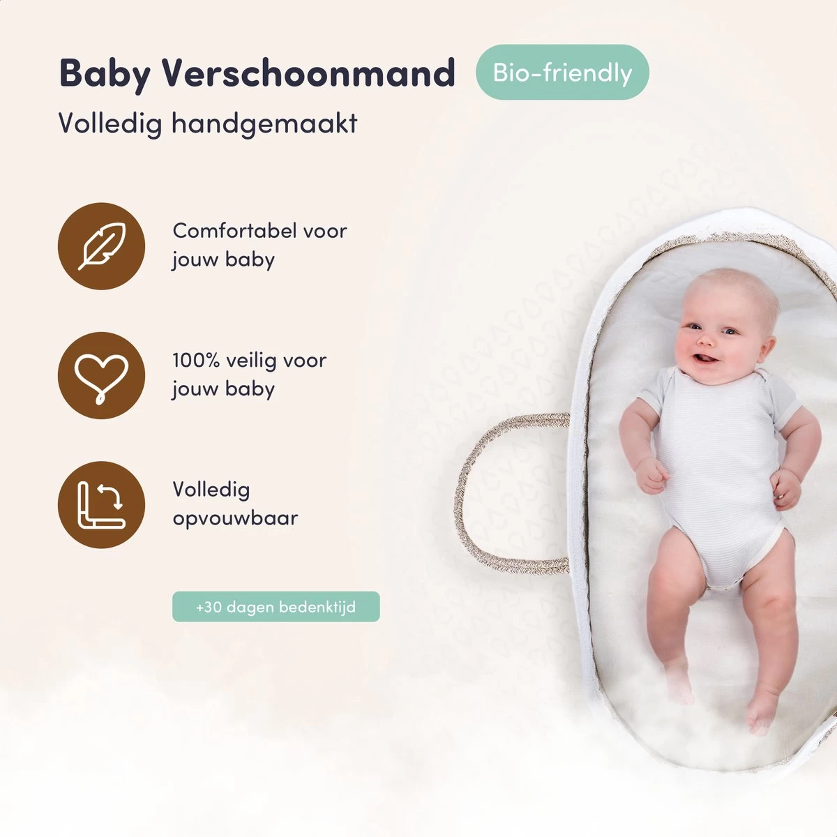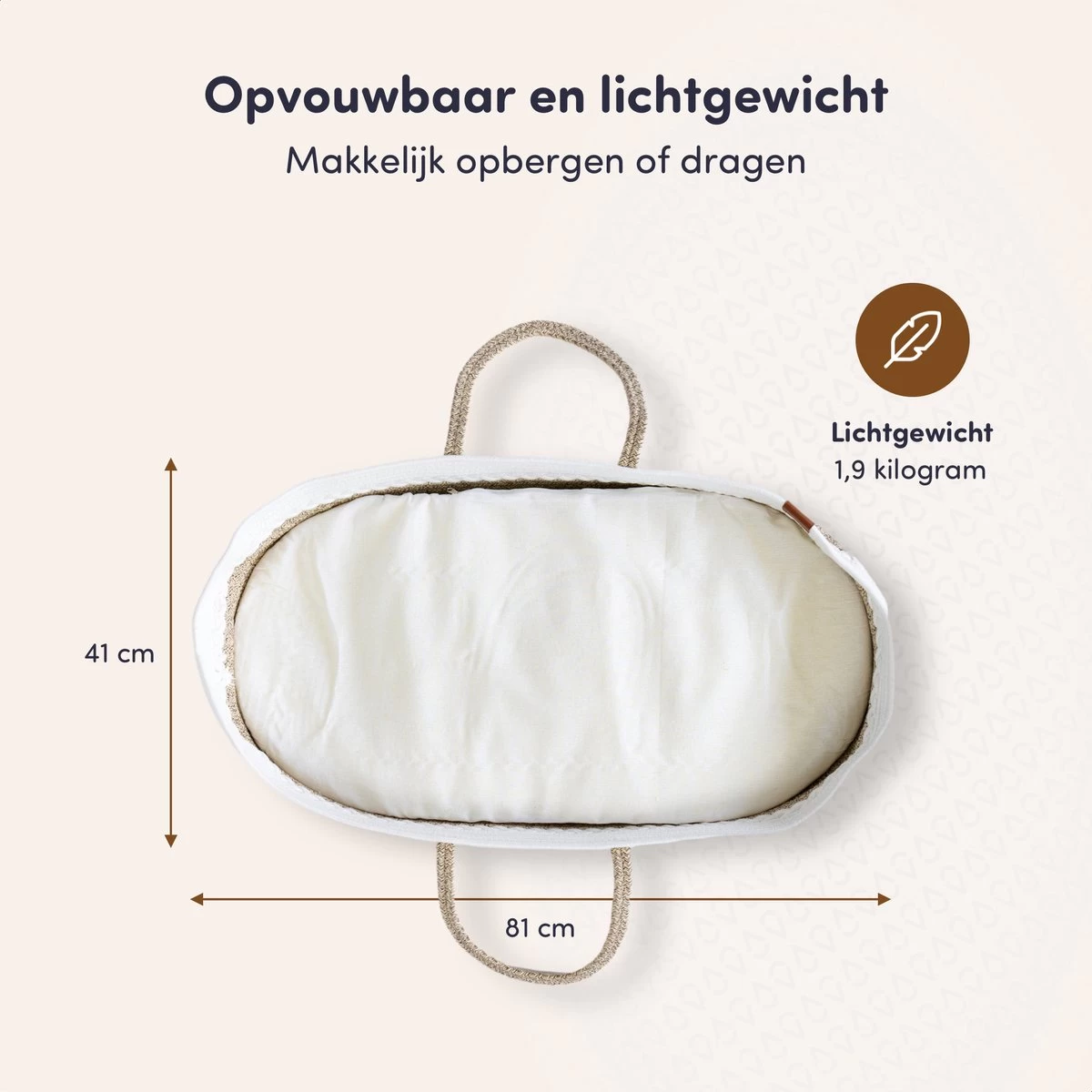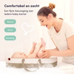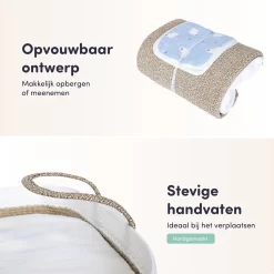 Niet alleen een warme, knusse toevoeging in elke babykamer, maar ook erg praktisch tijdens het verwisselen van de luiers en kleding van je baby. De verschoonmand is opvouwbaar, wat betekent dat hij onderweg makkelijk mee te nemen is.