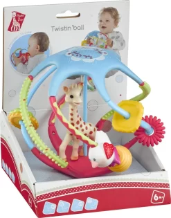 Deze leuke speelbal is licht en eenvoudig vast te pakken dankzij de 6 staven. Als baby de bal schud zullen de kralen tegen elkaar aan botsen waardoor er geluid ontstaat. Tevens zullen de ringen langs de staven glijden. De verschillende materialen en texturen van deze speelbal helpen bij het ontwikkelen van baby’s motoriek en de kleuren stimuleren baby’s zicht. Daarnaast bevat de speelbal ook zachte texturen waar de baby op kan kauwen om pijnlijk tandvlees te verlichten.