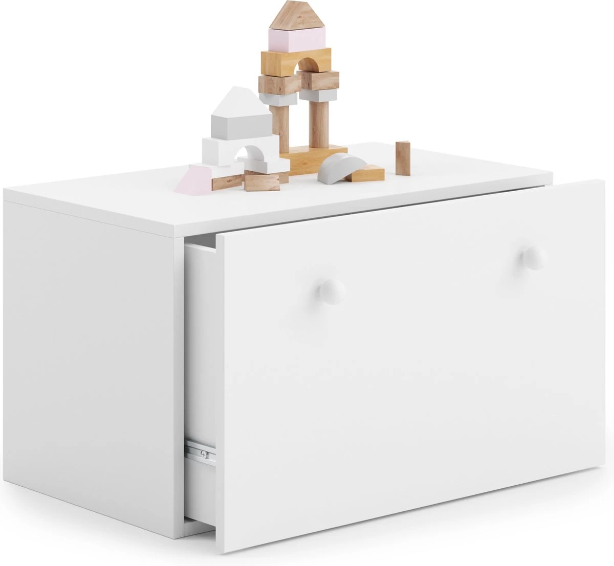 INGA kist is een perfecte opbergplaats. Het heeft een grote lade die volledig uitgetrokken kan worden. Er passen kleine spullen in, speelgoed, dekens en andere zaken die we niet in het zicht willen houden. Door de witte kleur past de kist in elke kamer, niet alleen in de kinderkamer, maar ook in de slaapkamer of hal. Technische gegevens:- Functionele, ruime lade- De randen zijn gefineerd met PVC- Duurzame en stevige constructie- Gelamineerd meubelplaat- Het product is gemaakt van gecertificeerde grondstoffen- Het product is ontworpen voor zelfmontage