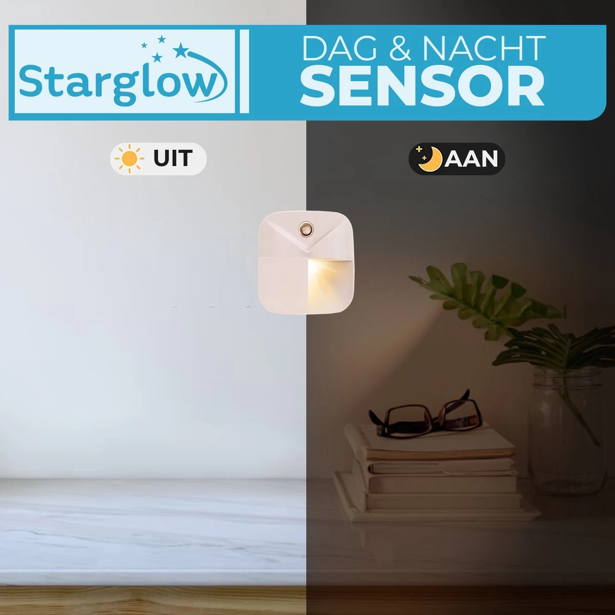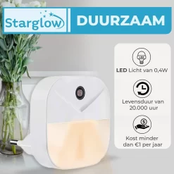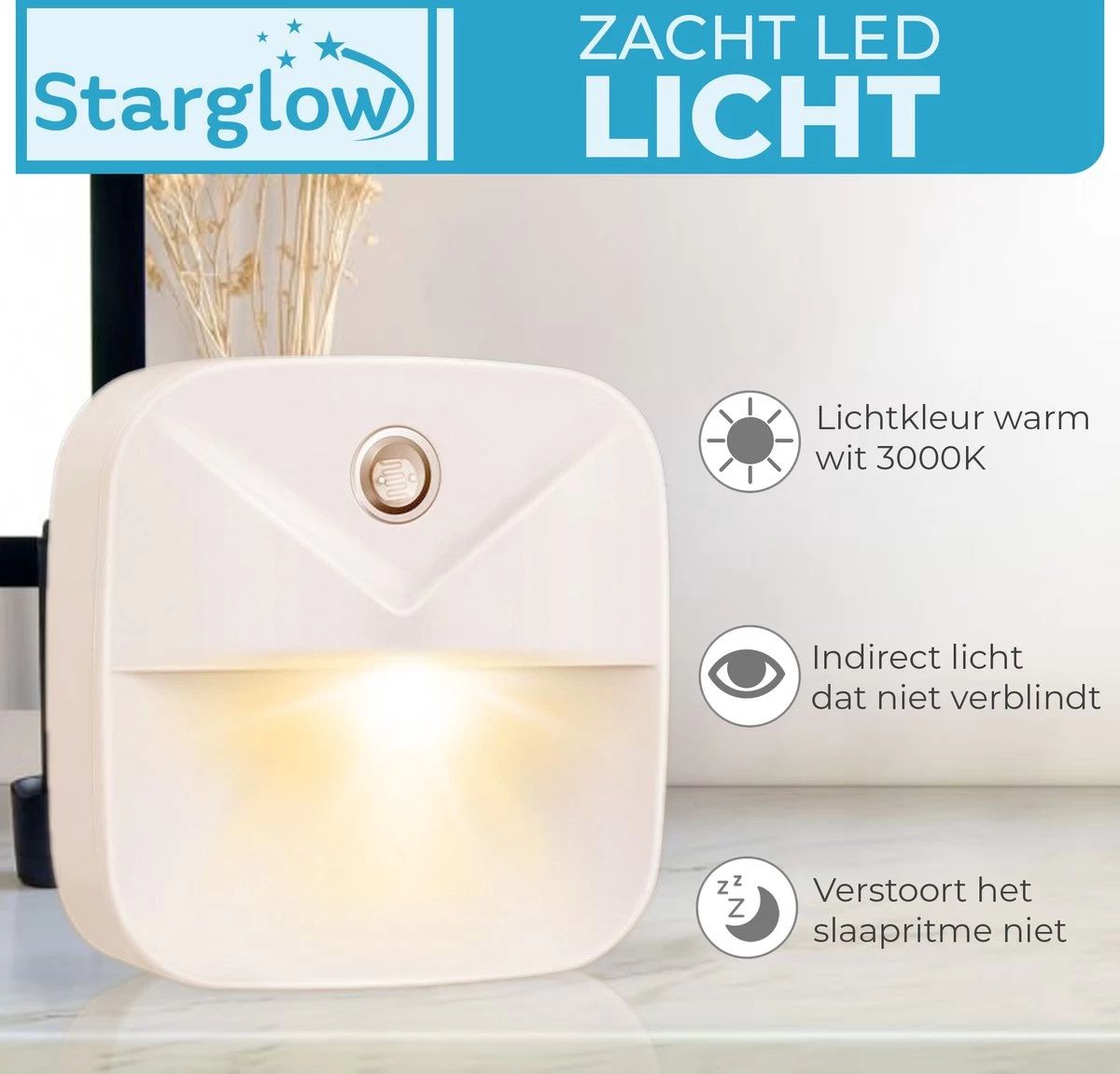De Starglow® nachtlampjes voor in het stopcontact gaan automatisch aan als het donker wordt. De lampjes geven een zacht licht af dat gericht staat naar de grond. Zo vind je ’s nachts gemakkelijk de weg zonder je slaapritme te verstoren. Deze lampjes zijn ook geschikt voor kinderen als hulp bij het slapen.