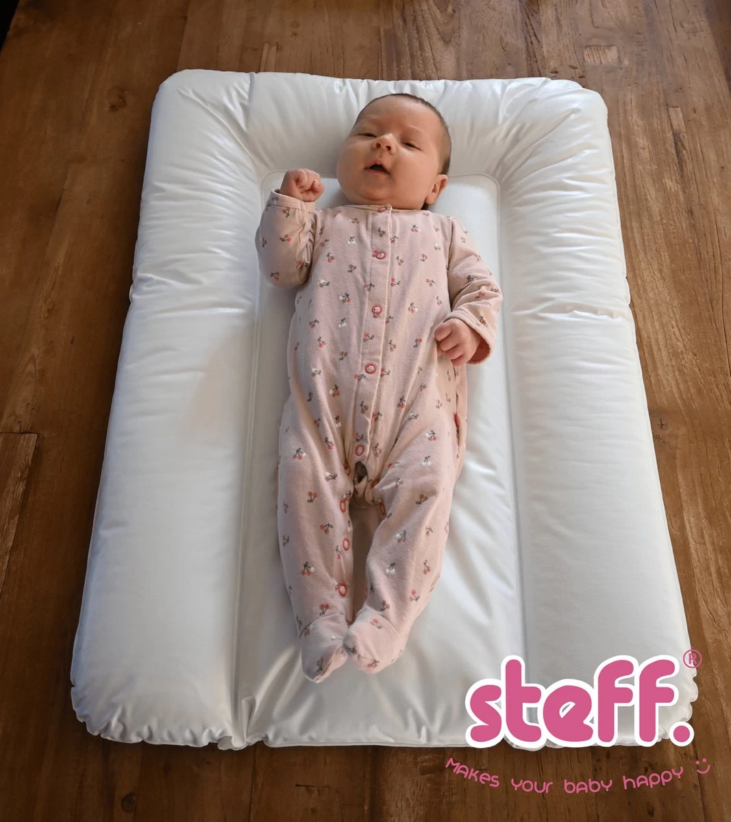 Het Steff aankleedkussen 70 x 50 cm is onmisbaar om dagelijks je baby’tje te verschonen. Je baby ligt er lekker zacht op dankzij de kwaliteitsvolle vulling. Het OEKO-TEX standard 100 label garandeert dat het geteste en gecertificeerde product vrij is van schadelijke stoffen die een risico vormen voor de gezondheid van de baby. Het aankleedkussen heeft een PVC hoes waardoor je het kussen makkelijk kunt afwassen. Het aankleedkussen is flexibel, waardoor je het makkelijk kan oprollen en meenemen.