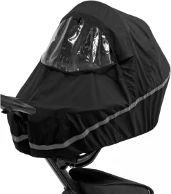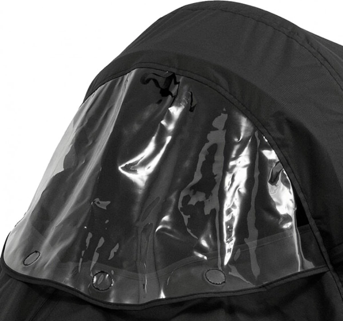 Ook heel belangrijk is de ventilatie en een grote opening, zodat je makkelijk bij je kindje kunt. Je vouwt het makkelijk op in een geïntegreerde opbergtas die je aan het onderstel kunt vastmaken. We adviseren je om niet de verlengde zonnekap te gebruiken in combinatie met het regenscherm, omdat de zichtbaarheid en ventilatie optimaal moet zijn.