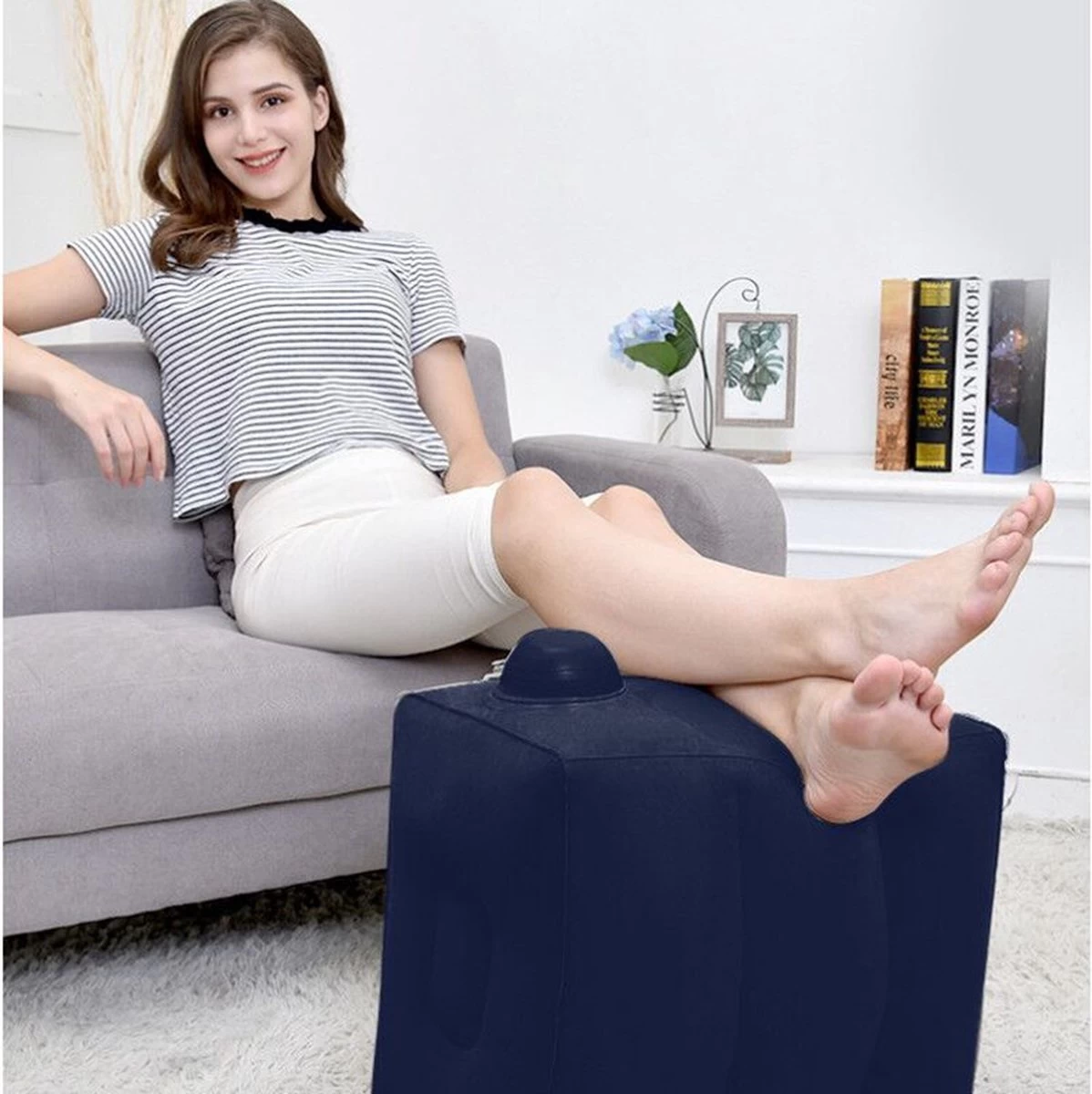 - Opblaasbaar lichtgewicht voetensteun. In 3 verschillende hoogten.