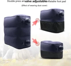 - Deze voetensteun is voorzien van 2 dubbele ventielen voor eenvoudig opblazen en leeg laten. Open het ventiel volledig om het kussen snel op te kunnen blazen of leeg te laten lopen. Open het bovenste deel van het ventiel om lucht bij te blazen. Het terugloop stukje sluit het ventiel af waardoor er alleen lucht in kan en niet uit.