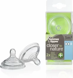 Tommee Tippee Advanced Anti-colic spenen zijn ontworpen om gebruikt te worden in combinatie met Tommee Tippee Anti-colic zuigflessen. De gevoelige spenen en de unieke anti-koliek technologie in de zuigflessen helpen darmkrampjes te bestrijden en zorgen voor een comfortabele voedingservaring. 84% van de moeders die onze anti-koliek zuigflessen gebruikten, vond dat ze de darmkrampjes symptomen van hun baby verminderden. Onze gemakkelijk aan te leggen borst-achtige speen, geliefd bij moeders en baby’s, voelt dichter op de huid en bootst de natuurlijke vorm en beweging van de moederborst na voor een comfortabele voeding. 95% van de moeders heeft gemeld dat de zachte, als de huid aanvoelende siliconen speen door hun baby werd geaccepteerd en ze deze aan anderen zou aanbevelen. Welke uitstroomsnelheid ben ik nodig? We bieden verschillende uitstroomsnelheden om met uw baby mee te groeien. Elke baby is anders, maar als richtlijn raden we een langzame stroom aan voor 0+ maanden, een gemiddelde stroom voor 3+ maanden en een snelle stroom voor 6+ maanden. Advanced Anti-Colic spenen zijn alleen compatibel met Advanced Anti-Colic zuigflessen. Hoe vaak moet ik de flesspenen vervangen? We raden aan om uw flesspenen om de twee maanden te vervangen en ze moeten onmiddellijk worden vervangen als ze beschadigd of slap zijn. * Gebaseerd op een onderzoek uit 2021 onder 524 ouders die Tommee Tippee-zuigflessen gebruiken ** Made for Mums, maart 2020