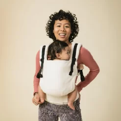 De Tula Free-to-Grow is momenteel eigenlijk de standaard als het gaat om ergonomische babydragers. Geschikt als buik- en rugdrager, draag je je kindje zonder insert vrijwel vanaf de geboorte (3,2 kilo) maat 56, in een goede ergonomische houding. Dit betekent dat je kindje een goede knie-tot-knie ondersteuning heeft, de billetjes lager zitten dan de knietjes (M-houding) en dat de rug een natuurlijke bolling kan aannemen. Maar ook dat de drager het gewicht van je kindje goed verdeelt over jouw bovenlichaam. Kortom: alles wat je zoekt in een babydrager!