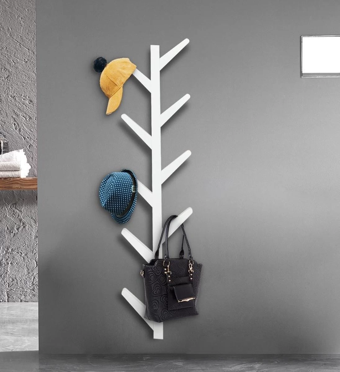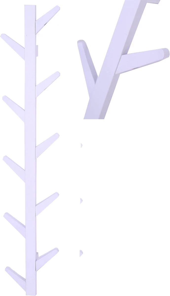 Wandkapstok Boomstam Tak Design – Hangende Muurkapstok – 125 Cm Hoog – 10 Haken – Wit