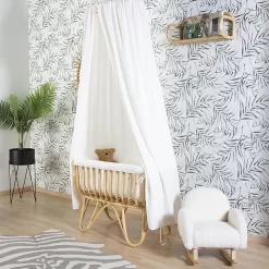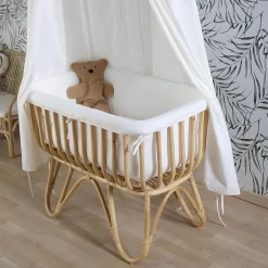 Het wiegje kun je door het lichte gewicht gemakkelijk verplaatsen van kamer naar kamer. Een wieg geeft je kindje een gevoel van geborgenheid en het is praktisch wanneer je de eerste weken er vaak nog ’s nachts uit moet. Het wiegje van Childhome is gemaakt van Rotan, rotan behoort tot de palmachtige plantensoorten en is zeer stevig.