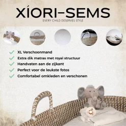 Voor je baby is het belangrijk dat hij/zij lekker kan liggen tijdens het verschonen en aankleden, daarom is ons matrasje van hoge kwaliteit en extra dik. De XIORI-SEMS verschoonmand is volledig handgemaakt.