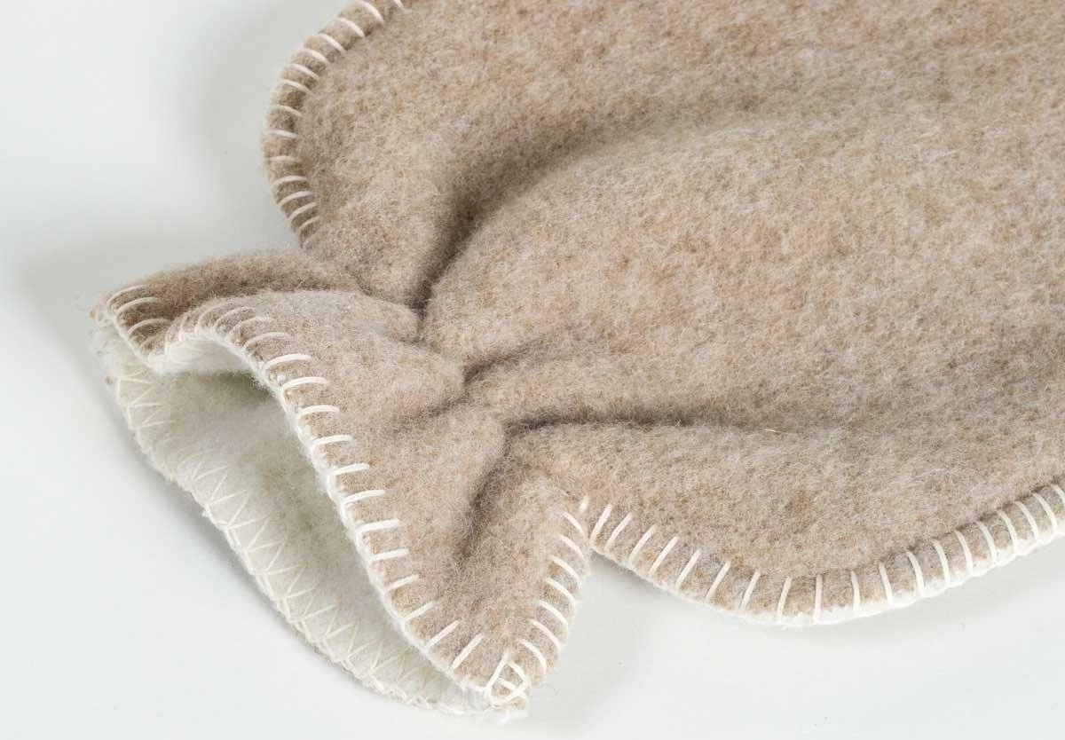 Merino wol heeft een all round talent: de wol heeft een veel dunere vezel dan gewone wol en ademt goed, verwarmt prima, neemt goed vocht op en geeft het ook weer af. Merinowol is anti-statisch. De maat van de kruikzak is 24 x 30 (bxh), hals ca. 15 x 6,5 (bxh) en weegt ca. 120 gram.