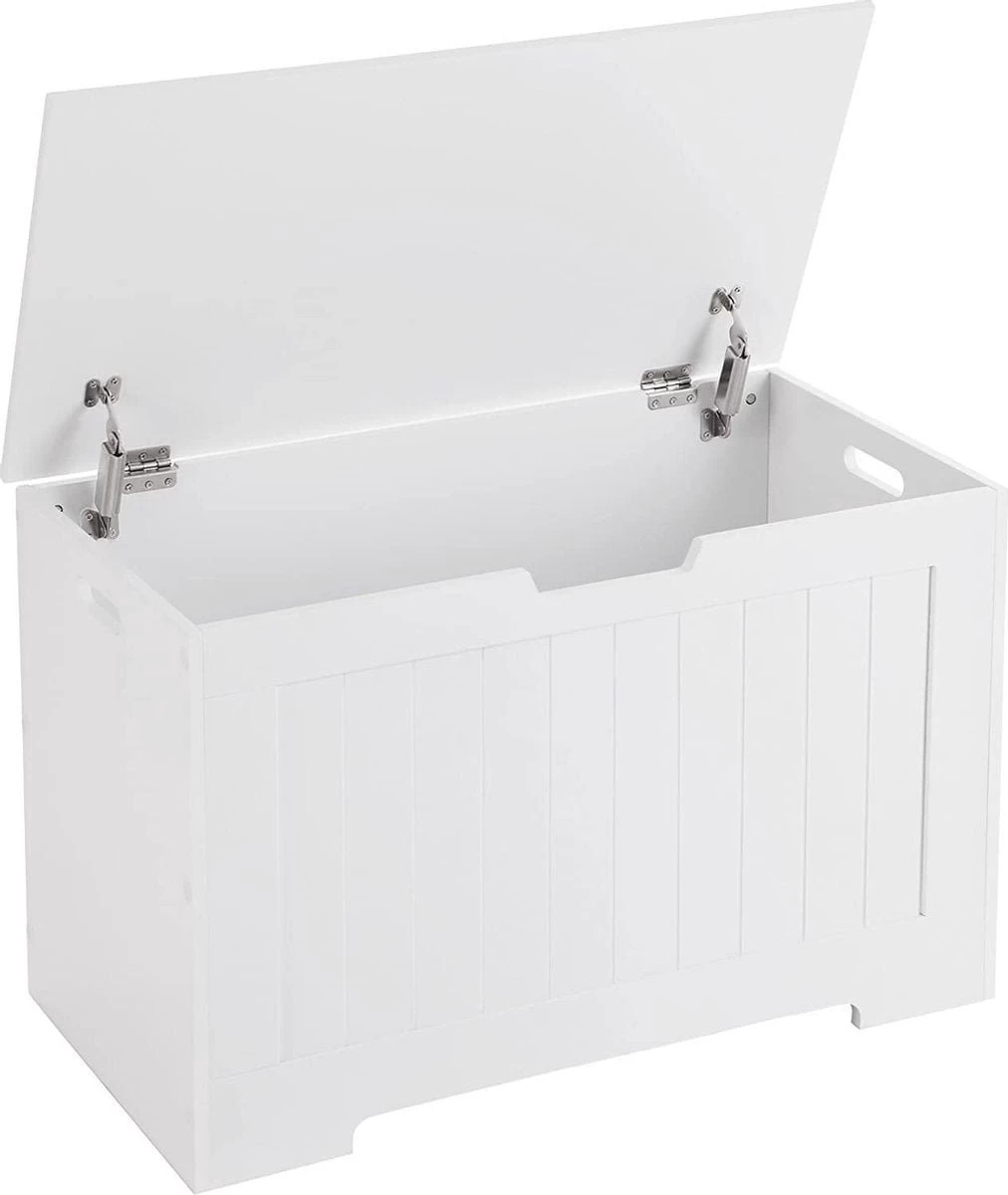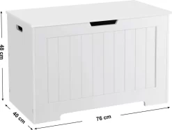 Brengt orde – hiermee kun je je speelgoed, boeken, kleding en schoenen voor gasten verbergen; ruimtebesparend maar met grote capaciteit, afmetingen: 76 x 48 x 40 cm (b x h x d). Veiligheidsscharnieren en handgrepen zorgen voor een veilig en praktisch gebruik – door de speciaal ontworpen veiligheidsscharnieren voorkomt het plotseling sluiten en garandeert daardoor een veilig gebruik; met 2 handgrepen aan de zijkant is de zitbank zeer licht en praktisch verplaatsbaar. Past probleemloos in elke interieurstijl – in stijlvol en tijdloos wit kan deze kistbank in de hal, woonkamer of slaapkamer worden gebruikt; zeer praktisch en veelzijdig, als schoenenbank, zitgelegenheid, nachtkastje of opbergbox enz. Stevig frame met fijne lak – de zitkast is robuust en duurzaam; mooi gelakt in wit, glad aan te raken, geeft een vleugje elegantie. Moeiteloze montage: de handleiding is begrijpelijk goed geïllustreerd en de onderdelen zijn ingedeeld met letters, zo wordt de montage zeer eenvoudig.