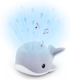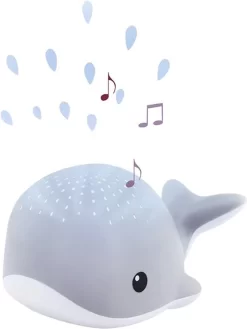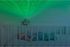 Wally projecteert waterdruppels in verschillende kleuren (blauw, groen, rood óf regenboogkleuren) tegen het plafond. Daarnaast speelt Wally drie verschillende melodieën, namelijk oceaan geluidjes, hartslag én slaapliedjes. Altijd een kleurtje en een geluidje dat bij jouw kindje past.