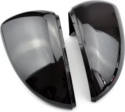 Deze zwarte spiegelkappen hebben een lichte metallic look in de lak! Deze kappen laten de auto een stuk agresiever doen lijken en maakt het in de meeste gevallen ook een stuk mooier.